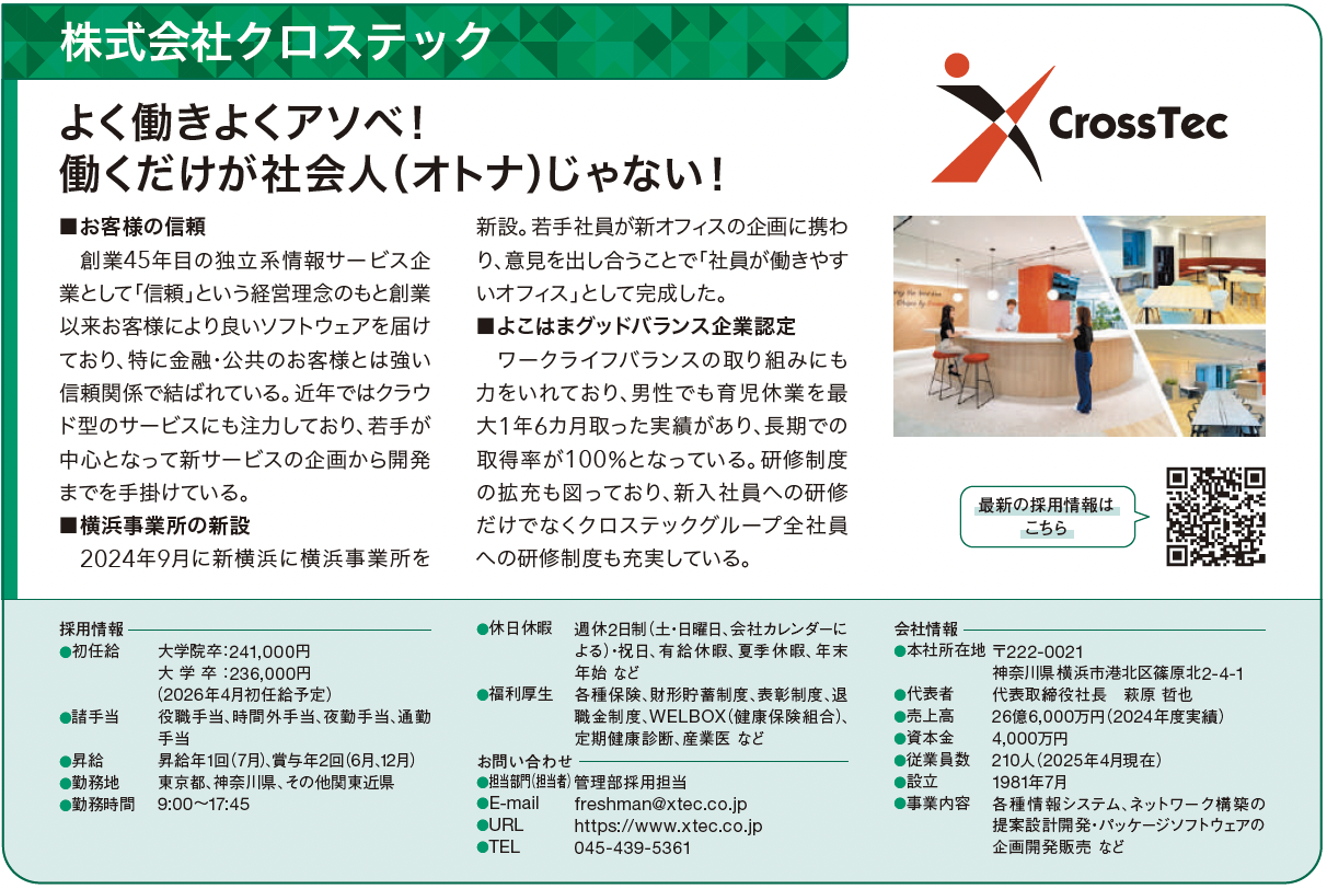 IT志望の就活生 IT業界への就職を目指す就活生 就職相談をする ITの仕事の中身とは? 入社3年後・5年後はこうなる 就活アドバイス 協賛企業紹介 協力大学一覧 IT産業懇話会とは セミナー・イベント情報一覧 IT企業採用担当者 IT企業採用担当者の方 入会案内 お問い合わせ IT産業懇話会とは 協賛企業紹介 協力大学一覧 セミナー・イベント情報一覧 学校関係者 大学・専門学校など学生の就職活動を支援されている方 入会案内 お問い合わせ IT産業懇話会とは 協賛企業紹介 協力大学一覧 セミナー・イベント情報一覧 入会案内 IT産業懇話会とは セミナー・イベント情報 協賛企業紹介 協力大学一覧 役員紹介 入会案内 企業向けお問い合わせ プライバシーポリシー 就活生向けお問い合わせ(就職相談) ITの仕事の中身とは? 入社3年後・5年後はこうなる 就活アドバイス IT業界徹底研究 就職ガイド(日経BP発行) Employment Guide IT産業懇話会とは 協賛企業紹介 協力大学一覧 活動目的・内容 役員紹介 お問い合わせ【企業】 就職相談【学生】 株式会社 クロステック IT業界徹底研究就職ガイド2027年版(日経BP発行) http://www.xtec.co.jp/