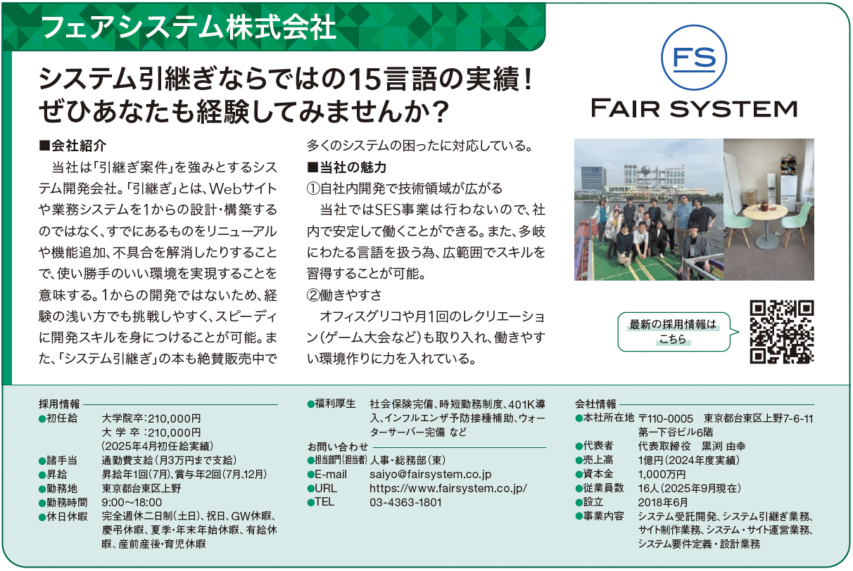 IT志望の就活生 IT業界への就職を目指す就活生 就職相談をする ITの仕事の中身とは? 入社3年後・5年後はこうなる 就活アドバイス 協賛企業紹介 協力大学一覧 IT産業懇話会とは セミナー・イベント情報一覧 IT企業採用担当者 IT企業採用担当者の方 入会案内 お問い合わせ IT産業懇話会とは 協賛企業紹介 協力大学一覧 セミナー・イベント情報一覧 学校関係者 大学・専門学校など学生の就職活動を支援されている方 入会案内 お問い合わせ IT産業懇話会とは 協賛企業紹介 協力大学一覧 セミナー・イベント情報一覧 入会案内 IT産業懇話会とは セミナー・イベント情報 協賛企業紹介 協力大学一覧 役員紹介 入会案内 企業向けお問い合わせ プライバシーポリシー 就活生向けお問い合わせ(就職相談) ITの仕事の中身とは? 入社3年後・5年後はこうなる 就活アドバイス IT業界徹底研究 就職ガイド(日経BP発行) Employment Guide IT産業懇話会とは 協賛企業紹介 協力大学一覧 活動目的・内容 役員紹介 お問い合わせ【企業】 就職相談【学生】 フェアシステム 株式会社 IT業界徹底研究就職ガイド2027年版(日経BP発行) https://www.fairsystem.co.jp/